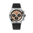Breitling Chronomat B01 42 is a striking watch that blends robust performance with refined aesthetics. Its elegant salmon - sunray dial with contrasting black subdials is housed within a stainless steel case, powered by the in-house Breitling Caliber 01. This COSC-certified chronometer guarantees precision and durability with a 70-hour power reserve, making it perfect for demanding situations. The unidirectional rotating bezel and sapphire crystal add functionality and resilience, while the sleek black rubber strap enhances its sporty yet sophisticated design. The watch is unworn, in like-new condition, and comes with the original box, papers, and warranty documents dated 2024.