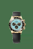 Introducing unworn watch Rolex Cosmograph Daytona 40mm, 18k Yellow Gold, Ref# 126518ln-0014. Born for motor racing, the watch combines sporty chic with versatility, making it a must-have for lovers of the fast lanes and the finest cars. The luxurious new 2025 is synonymous with excellent workmanship, first-class technical features and unique looks. The Turquoise blue dial, adorned with black spray-coated chronograph counters, provides an expressive backdrop for the 18k Yellow Gold applique hour markers and hands, which are filled with Chromalight, a luminescent material that ensures legibility in low-light conditions. Sophisticated timepiece features a classic chronograph layout designed for precision and performance. At the center, the hour and minute hands provide clear timekeeping, while a small second’s sub-dial positioned at 6 o’clock adds balance and elegance. For chronograph functionality, a 30-minute counter complements the central seconds hand at 3 o’clock and a 12-hour counter at 9 o’clock—ideal for tracking elapsed time with accuracy. Additionally, the stop-seconds function ensures precise time setting, catering to those who value meticulous synchronization. A well-readable minute scale is applied along the outer contour of the dial. All this charm is complemented by a ribbed, for a comfortable grip, screw-down crown in 18k Yellow Gold with the Rolex logo, which has a triple Triplock water-resistance system. At the 2 and 4 o’clock, positions are the chronograph control buttons made of 18k Yellow Gold. The dial is covered with a scratch-resistant sapphire crystal and a solid 18k Yellow Gold case back. The Black monobloc Cerachrom bezel in ceramicfeatures an engraved tachymetric scale, enabling drivers to measure average speeds up to 400 units per hour, a nod to its racing heritage.At the heart of this timepiece lies the Self-winding mechanical movement Rolex Calibre 4131, contains 47 jewels and has an approximate power reserve approximately of 72 hours, ensuring exceptional precision and reliability. This spectacular timepiece is presented on an Oysterflex bracelet of flexible metal blades overmoulded with high-performance elastomer. The 18k Yellow Gold Folding Oysterlock safety clasp with Rolex Glidelock extension system comfort, made using own unique Rolex technologies, guarantees maximum comfort on the wrist. Water resistant up to 100m/330ft (10 ATM).
