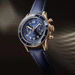Introducing unworn watch the Blancpain Air Command Flyback Chronograph Ref# AC03-36B40-63A is a modern tribute to high-performance aviation timepieces. Housed in a lightweight yet durable 36.2mm 18k Rose Gold case with an 11.5mm profile, this commanding chronograph strikes the perfect balance between rugged function and refined style. The blue dial with a fine sunray finish features a dynamic layout, accented by polished Rose Gold hands with luminous fill, bold luminous Arabic numeral hour markers, and two chronograph sub-dials: a 30-minute counter at 3 o’clock and a 12-hour counter at 9 o’clock.A large central chronograph polished Rose Gold seconds hand enhances legibility and precision. Engineered for seamless operation, the flyback chronograph function allows the timer to reset and restart instantly with a single push—ideal for high-speed timing situations. This timepiece features a meticulously fine-printed minutes, seconds, and fractions-of-a-second track, offering razor-sharp precision for high-accuracy timekeeping. Encircling the dial's perimeter is a tachymeter scale, seamlessly integrated to measure speed based on travel time—an essential tool for those who value performance and functionality in a chronograph. This distinguished timepiece is operated with refined precision via an 18k Rose Gold crown, seamlessly blending functionality with elegance. Enhancing its chronograph capabilities, two 18k Rose Gold pushers positioned at the 2 and 4 o’clock marks offer effortless control over timing functions. Powering this instrument is the in-house Blancpain Caliber F188B, beating at a high frequency of 3 Hz, with 35 jewels, 255 components, and a 40-hour power reserve. The transparent case back reveals the intricate mechanics of this precision movement. The bi-directional 18k Rose Gold bezel with an inlaid blue ceramic ring and luminous Arabic numerals adds utility and sophistication. Secured by a blue calfskin leather strap and aт 18k Rose Gold Push Button Deployant Buckle, the watch offers comfort and a touch of vintage pilot flair. Protected by a scratch-resistant sapphire crystal and rated to 30 meters of water resistance, this chronograph is a robust, heritage-inspired piece for those who appreciate functionality with fine detail.