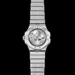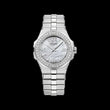 Introducing the unworn Chopard Alpine Eagle 36 Ladies Watch, Ref# 298601-3002 — a modern icon inspired by the majesty of the Alps and the piercing gaze of the eagle, masterfully engineered for the contemporary man of purpose and precision. Crafted from brushed and polished stainless steel, the 36mm case with a slim 8.40mm profile combines strength and elegance in perfect balance. The White mother-of-pearl dial radiates depth and character, making it instantly recognizable and visually striking. Rhodium-plated silver-tone Roman numerals at 3, 6, 9, and 12 o’clock anchor the dial, while luminous index hour markers and rhodium-plated hands filled with Super-LumiNova® ensure clarity even in low light. Minute markers encircle the outer rim, and a subtle date window between 4 and 5 o’clock adds practical functionality. The fixed Stainless Steel bezel is adorned with 36 brilliant-cut diamonds (0,810 total carat weight), framing the dial in a halo of light. A scratch-resistant sapphire crystal protects the dial, while the transparent case back reveals the beautifully finished Chopard Caliber 09.01-C — an in-house automatic Chronometer movement beating at 25,200 vph, with 27 jewels and a 42-hour power reserve. The watch features a robust screw-down crown for enhanced water resistance up to 100 meters (330 feet), and is completed with a seamlessly integrated brushed and polished stainless steel bracelet, secured by a hidden folding clasp for a clean and comfortable fit. The Chopard Alpine Eagle is more than a timepiece — it’s a bold tribute to nature’s power and refined craftsmanship, designed for those who soar above the ordinary.