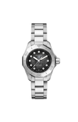 Introducing the unworn TAG Heuer Aquaracer Automatic 30mm Women’s Watch Ref# WBP2410.BA0622, a bold fusion of precision engineering and modern sport-luxury style. The fine-brushed and polished stainless steel case elegantly frames a captivating black Mother of Pearl dial, its natural iridescence shifting beautifully with every angle of light. Enhancing both form and function, the dial is set with 11 brilliant diamond hour markers, totaling approximately 0.106 carats, each meticulously placed to catch the eye while ensuring refined legibility. Complementing this brilliance, luminous silver-tone hands glide effortlessly across the dial, offering clarity in any condition and creating a harmonious balance between luxury, precision, and everyday wearability. Minute markers trace the outer rim, while the date display sits cleanly at 6 o’clock. Protected by an anti-reflective, scratch-resistant sapphire crystal, this model is powered by the robust TAG Heuer Calibre 9 automatic movement, featuring 18 jewels, a frequency of 28,800 vph, and a 40-hour power reserve. The watch is completed with a screw-down stainless steel crown, ribbed for easy grip and adorned with the TAG Heuer logo, a solid case back, and a uni-directional rotating brushed stainless steel bezel for professional diving precision. Secured with a fine-brushed and polished stainless steel bracelet with a double-security folding clasp, the Aquaracer delivers performance and comfort in equal measure. With a 200m/660ft water resistance, it is built for both adventure and refined everyday wear.
