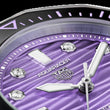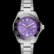 Introducing the unworn TAG Heuer Aquaracer Professional 300 Date Automatic 36mm Ladies Watch, Ref# WBP231M.BA0618 — a radiant fusion of strength, sophistication, and modern femininity. The brushed and polished stainless steel case (thickness 11.4mm) frames a stunning Purple lacquered dial features the signature an elegant wave motif, symbolizing both fluidity and depth. Eight sparkling diamonds (0.077ct) serve as hour markers, while polished luminous indexes accent the 3, 9, and 12 o’clock positions for superior legibility. The silver-tone luminous hands and central seconds hand glide across the dial, complemented by white minute markers and a date window at 6 o’clock, enhanced by a cyclops magnifier. Powered by the TAG Heuer Calibre 5 Automatic movement, this precision engine embodies Swiss craftsmanship at its finest. With 25 jewels ensuring smooth operation and reduced friction, it beats at a steady 4Hz (28,800 vibrations per hour) for exceptional accuracy. Offering a power reserve of 38 hours, the Calibre 5 delivers reliable performance over two days, blending mechanical mastery with everyday dependability. The stainless steel screw-in crown reinforces the watch’s durability and water resistance, ensuring a secure seal against moisture and dust. Its solid construction and precise threading reflect TAG Heuer’s commitment to functional engineering, offering both reliability and a refined tactile experience with every adjustment. A unidirectional rotating bezel, crafted from polished stainless steel and black ceramic, features a distinctive Purple segment on the first 15 minutes, blending utility with style. Powered by TAG Heuer’s automatic movement and protected by scratch-resistant sapphire crystal, this timepiece is engineered for excellence down to 300m/1000ft of water resistance. The three-row stainless steel bracelet, featuring fine adjustment and a folding clasp with push-button micro-adjustment, ensures comfort, durability, and perfect everyday versatility. A true reflection of adventure refined through elegance.
