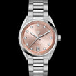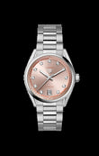 Introducing the unworn TAG Heuer Carrera Calibre 7 Date Automatic Ladies watch, Ref# WBN231D.BA0001—a refined blend of contemporary precision and timeless Carrera design. Its 36mm brushed and polished stainless steel case, with a thickness of 10.2mm, delivers both presence and elegance on the wrist. The Soft powdery pink sunray-brushed dial radiates a captivating sense of movement, its swirling texture brought to life by a graceful gradient track encircling the display. Each detail plays with light, creating depth and fluidity. The facetted 11-diamond chaton indexes (totaling 0.22 ct) with Super-LumiNova® filled dots above the hour markers elevate the dial’s design, enriching its visual allure with a refined touch of opulence. Each sparkling gem catches the light from every angle, adding depth and brilliance that perfectly balance elegance with sophistication. This meticulous detailing transforms timekeeping into an art form — a subtle celebration of luxury and craftsmanship. Polished contrasting Silver-tone index hands with Super-LumiNova® filled on the hour and minute hands glide over the perfect dial. A finely printed minute, second and fractional scale with Arabic numerals marking every 10 minutes along the flange frames the dial with precision detailing. The Date windows at 6 o’clock offer practical everyday functionality. At its core beats the reliable TAG Heuer Calibre 7 automatic movement, equipped with 21 jewels, operating at 28,800 vph, and offering a 46-hour power reserve. Its transparent case back reveals the movement’s mechanics, adding a touch of technical artistry. Protected by a scratch-resistant sapphire crystal, the Carrera maintains both durability and clarity.The fixed polished stainless steel bezel lends sleek balance.The look is completed with a brushed and polished stainless steel bracelet, secured by a folding clasp with push buttons, ensuring comfort and reliability.Water-resistant to 50 meters (165 feet), this Carrera is built for both versatility and endurance. A watch of elegant utility and modern character, the Carrera Calibre 7 Date stands as a perfect daily companion for those who value performance, precision, and understated luxury.