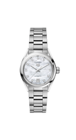 Introducing the unworn TAG Heuer Carrera Calibre 9 Date Automatic Women watch, Ref# WBN2412.BA0621—a refined blend of contemporary precision and timeless Carrera design. Its 29mm brushed and polished stainless steel case, with a thickness of 10.75mm, delivers both presence and elegance on the wrist. The natural mother-of-pearl dial radiates a subtle iridescence, shifting beautifully with the light to reveal its unique character. No two dials are ever the same, giving the watch an exclusive charm that blends timeless elegance with a touch of individuality. Polished index hands, with luminous fill on the hour and minute, sweep gracefully across the dial, ensuring effortless readability in all conditions. The 11 applied diamond hour markers elevate the refined design, each expertly set to capture and reflect light with understated brilliance. Together, these elements create a harmonious balance of functionality and luxury, where timeless elegance meets everyday versatility. The Date windows at 6 o’clock offer practical everyday functionality. At its core beats the reliable TAG Heuer Calibre 9 automatic movement, equipped with 18 jewels, operating at 28,800 vph, and offering a 40-hour power reserve. Its transparent case back reveals the movement’s mechanics, adding a touch of technical artistry. Completing the design, a fixed polished stainless steel bezel lends sleek balance, while the brushed and polished stainless steel bracelet with a push-button folding clasp ensures comfort and secure wear. Water-resistant to 100 meters (330 feet), this Carrera is built for both versatility and endurance. A watch of elegant utility and modern character, the Carrera Calibre 9 Date stands as a perfect daily companion for those who value performance, precision, and understated luxury.