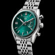 Introducing the TAG Heuer Carrera Chronograph 39 mm, Ref# CBS2211.BA0048 — a sophisticated update to TAG Heuer’s storied Carrera lineage, blending heritage proportions with modern performance. Encased in fine-brushed and polished stainless steel, the 39 mm case (13.9 mm thick) projects elegance and balance. At its heart is a teal green circular-brushed dial, punctuated by a single minute chronograph counter at 3 o’clock and an angled date window at 9 o’clock — a lean, ultra-legible layout that pays homage to the iconic “DATO” style. An in-house TH20-07 automatic movement (4 Hz, 28,800 vph) with an impressive 80-hour power reserve powers tracking time with distinction, the Carrera “Glassbox”. Its screw-down sapphire caseback reveals the finely finished movement, placing TAG Heuer’s technical artistry fully on display. Aesthetically, every detail is considered: from the circular-brushed dial to the vintage-inspired seven-row beads-of-rice bracelet, which blends flexibility and classic appeal. Water-resistant to 100 meters, this Carrera is built to perform both in motion and in style. In short: the CBS2211.BA0048 is a distilled expression of the Carrera’s DNA — refined, purposeful, and ready to shift the conversation from timekeeping to timelessness.