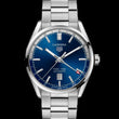 Introducing the unworn TAG Heuer Carrera Calibre 7 GMT Twin Time 41mm Men’s Watch, Ref# WBN201A.BA0640 — a refined companion for the modern globetrotter who values precision and poise. With its brushed and polished stainless steel case measuring 12.30mm in thickness, this timepiece merges strength with sophistication. The blue sunray-brushed dial radiates understated elegance, complemented by polished rhodium-plated hour markers with Super-LumiNova® luminous tips and polished hands that glow brilliantly in low light. A red arrow-head GMT hand elegantly tracks a second time zone, sweeping around a 24-hour flange divided into silver (day) and blue (night) sectors — a subtle yet striking visual cue for world travelers. The date window at 6 o’clock adds practical balance to the dial’s symmetry, while the fine minute and seconds track enhances legibility and precision. At its heart beats the TAG Heuer Calibre 7 automatic movement, oscillating at 28,800 vph with an approximate 50-hour power reserve, visible through the transparent case back — a testament to Swiss craftsmanship. Protected by a scratch-resistant sapphire crystal, the Carrera maintains both durability and clarity. The look is completed with a brushed and polished stainless steel bracelet, secured by a folding clasp with push-buttons, ensuring comfort and reliability. Water-resistant to 100m (330ft), the Carrera Calibre 7 GMT Twin Time blends travel-ready functionality with the timeless aesthetic and technical excellence that define TAG Heuer.