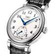 Introducing the unworn IWC Da Vinci Automatic “150 Years” Unisex Watch, Ref# IW358101 — a refined timepiece that blends heritage craftsmanship with modern sophistication. Housed in a polished stainless steel case with a round 40.4mm profile and a slim 12.1mm thickness, this commemorative model exemplifies IWC's timeless design philosophy. Its white lacquered dial, inspired by traditional enamel work, is adorned with polished blued alpha-style hands and classic black Arabic numerals, striking a perfect balance between vintage charm and contemporary clarity. A small second’s sub-dial at 6 o’clock adds functional elegance, while the surrounding black minute track, marked by numerals at five-minute intervals, offers enhanced readability without clutter. At its heart ticks the IWC-manufactured Calibre 82200 automatic movement — a technical marvel boasting 33 jewels, a 28,800 vph beat rate, and an impressive 60-hour power reserve. Visible through the transparent sapphire case back, the movement’s refined mechanics and Côtes de Genève finishing speak to the watch’s elite pedigree. Framing the dial with understated elegance, the fixed polished stainless steel bezel adds a refined brilliance to the watch’s overall design. Its sleek, mirror-like finish not only enhances the visual symmetry of the timepiece but also reflects the craftsmanship and attention to detail inherent in luxury watchmaking. This bezel, while simple in form, serves as a timeless accent—subtle yet striking—perfectly complementing both formal attire and everyday sophistication. Fitted with a rich black alligator leather strap by Santoni, secured with a classic pin buckle, and water resistant to 30 meters, the Da Vinci Automatic is a versatile piece of horological artistry — a distinguished companion for both him and her, built to last for generations.