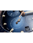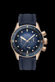 Introducing the unworn Blancpain Fifty Fathoms Bathyscaphe Chronographe Flyback, Ref# 5200-3640-O52A — a masterful fusion of underwater resilience and high-performance chronograph engineering. Housed in a bold 43mm brushed 18k Red Gold case with a commanding 14.9 mm thickness, this timepiece pays homage to Blancpain’s diving heritage while embracing modern material innovation. The Graduated blue dial with a fine sunray finish is both sleek and highly legible, featuring applied polished 18k Red Gold hour markers and bold square hands, all filled with luminous material for clarity in low light. The date window is subtly positioned between 4 and 5 o'clock, while the small seconds display is positioned at 6 o'clock, enhancing the functionality of this model.This chronograph excels in function with a flyback feature, allowing instant reset and restart with a single push — ideal for precision timing. The dial integrates a central red-tipped seconds hand, a 30-minute counter at 3 o’clock, and a 12-hour counter at 9 for comprehensive time tracking. Encircling the dial is a unidirectional rotating bezel in brushed 18k Red Gold, with Blue ceramic fill - highly scratch resistant and graduated with a Liquidmetal™ 60 minutes scale, ensuring both durability refined finish. A luminous raised dot at 12 o'clock ensures dive-readiness. At its core beats the in-house Blancpain Caliber F385, a 37-jewel automatic movement with a 50-hour power reserve. Composed of 322 parts and equipped with a silicon balance spring, it resists magnetism, corrosion, and aging with remarkable efficiency. The transparent case back reveals its sophisticated inner workings. Built for endurance and refined with precision, this timepiece features a scratch-resistant sapphire crystal that ensures lasting clarity and protection against the elements. The 18k Red Gold screw-in crown not only enhances water resistance but also adds in combination with 18k Red Gold chronograph pushers a sleek, modern touch to the watch’s robust design—offering both functionality and aesthetic strength in one seamless detail. Fitted with a Blue Sailcloth with calfskin lining Fabric strap and an 18k Red Gold pin buckle clasp, this timepiece arrives in a rugged Peli water-resistant case, built for adventure. With 300 meters of water resistance, the Bathyscaphe Flyback is as ready for the depths as it is for everyday excellence.
