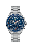 Introducing the unworn TAG Heuer Formula 1 Chronograph Quartz, Ref# CAZ1014.BA0842 — a bold, precision-driven timepiece built to capture the thrill of racing. Its 43mm brushed stainless steel case, paired with an 11,5mm profile, delivers a commanding yet versatile presence on the wrist. The blue sunray dial takes center stage, accented with luminous silver-tone hands, sleek stick markers, and a bold Arabic numeral at 12 o’clock for instant readability. The dark blue flange features a white minute scale with clear Orange Arabic numerals indicating five-minute intervals and an Orange starting triangle reminiscent of the pit lane timing instruments. The dial’s racing-inspired chronograph layout features a small second’s sub-dial at 3 o’clock, a 30-minute counter at 9, and a 1/10th of a second counter at 6o’clock. An Orange central second’s hand sweeps across the dial, while a date window at 4 adds functional balance. Powered by the reliable Ronda 5040.D quartz movement, this chronograph is built for performance — complete with an end-of-life battery indicator that signals precision timing until the very last tick. Robust features include a scratch-resistant sapphire crystal, a screw-down stainless steel crown, a fixed stainless steel bezel with Blue aluminum ring with Tachymeter scale, and 200m water resistance, ensuring it’s ready for both speed and endurance. Completing the look is a brushed stainless steel bracelet with a secure Foldover clasp and push-button release, offering strength and comfort in equal measure. The TAG Heuer Formula 1 Chronograph Quartz is not just a watch — it’s a tribute to motorsport’s relentless pursuit of speed, precision, and adrenaline.