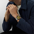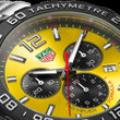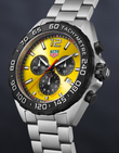 Introducing the unworn TAG Heuer Formula 1 Chronograph Men’s Watch, Ref# CAZ101AM.BA0842. Dynamic and performance-driven, this chronograph stands out with a 43mm brushed stainless steel case (12.4mm thick), designed to deliver bold presence on the wrist. The yellow sunray-brushed dial ignites with energy, featuring racing-inspired chronograph counters and luminous hands and hour markers for clarity in every light. The layout is precision-focused: a small seconds sub-dial at 3 o’clock, a 30-minute counter at 9 o’clock, and a 1/10th of a second counter at 6 o’clock, while the red central chronograph seconds hand injects striking contrast and racing spirit. A date window at 4 o’clock adds practical versatility. Engineered for reliability, this timepiece is powered by a quartz movement with end-of-life battery indicator, where the seconds hand jumps every four seconds to signal battery replacement. Protection comes from a scratch-resistant sapphire crystal; while the black PVD-coated stainless steel fixed bezel with raised tachymeter, scale enhances both durability and performance-ready style. Completing the design, the watch features a screw-down black PVD-coated crown, a solid case back, and a brushed stainless steel bracelet with push-button deployant clasp. With 200m of water resistance, it’s built to handle both high-speed circuits and everyday adventures.