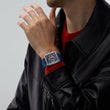 The unworn TAG Heuer Monaco Chronograph Titanium, Ref# CBL2182.FT6235, is a bold reinterpretation of a legend—paying tribute to the elusive Monaco of the 1970s while pushing design into strikingly modern territory. The 39mm x 39mm square case, crafted from satin-finished titanium, wears light but projects strength. With a thickness of 13.8mm, it carries a commanding wrist presence without excess bulk. The fixed Titanium bezel, paired with a matching Titanium crown and chronograph Titanium pushers, completes the aesthetic view. Paying tribute to the TAG Heuer Monaco’s original palette, this striking edition brings heritage into the present with a cool blue skeleton dial that reveals both depth and dynamism. The open-worked design is elevated by a unique interplay of red and white highlights, echoing the adrenaline and precision of motor racing. Bold yet refined, it captures the spirit of the Monaco’s iconic past while offering a modern edge that keeps the legend alive on the wrist. The dial’s architectural depth is elevated with silvered polished hands and indexes, each treated with bold white Super-LumiNova® for flawless legibility in low light. Striking against this precision, the red chronograph hands ignite the design with racing intensity, embodying the adrenaline of the track. At 6 o’clock, the skeletonized date wheel reveals the current date against a clean white background, creating a sharp focal point on the dial. Sharing the same position, the small seconds sub-dial adds balance and precision, merging timekeeping functionality with a sophisticated, technical aesthetic. Sub-dials at 3 and 9 o’clock track elapsed 30 minutes and 12 hours, with crisp clarity. Beating within is the TAG Heuer Calibre Heuer TH20-00, a modern column-wheel chronograph visible through the sapphire case back. Its blackened column wheel and rose gold-plated rotor are hallmarks of precision and luxury. Running at 28,800 vph, with 33 jewels and an 80-hour power reserve (65 with the chronograph engaged), it delivers both endurance and finesse. The watch is paired with a Blue rubber Textile Pattern strap with Calfskin Lining, adding a refined edge to its daring design. Secured with a titanium grade two folding clasp and Double-Security, it’s engineered for strength and comfort. With 100m water resistance, this Monaco isn’t just built for display—it’s made to perform. This Special Edition fuses vintage inspiration with cutting-edge execution. A rare blend of stealth, elegance, and racing DNA, the Monaco is a watch for collectors who appreciate history reimagined in the boldest possible way.