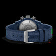 Introducing the unworn IWC Pilot’s Watch Chronograph 41 TOP GUN Oceana, Ref. IW389402, channels the spirit of naval aviation into a bold, precision-built timepiece. Its 41mm matte blue ceramic case — the result of a complex process blending zirconium oxide with metallic oxides — mirrors the deep navy hue of pilots’ carrier-deck uniforms. This sophisticated manufacturing technique demands exceptional expertise, as the final color emerges only after countless trials and the intense heat of sintering. The matte blue dial features crisp white printed numerals and indices, with luminous accents at 12, 3, 6, and 9 for clear readability in any light. Matte black hands, luminous-filled for optimal visibility, sweep confidently across the dial, while a white central chronograph seconds hand adds functional contrast. A day-date display sits cleanly at 3 o’clock, with chronograph counters at 12 and 9 o’clock and a small second’s sub-dial at 6. Lightweight titanium crowns, pushers, and case back ensure comfort and durability, while the blue rubber strap with denim-finish textile inlay adds a rugged yet refined touch. Inside beats the IWC-manufactured caliber 69380 — a robust column-wheel chronograph with a 46-hour power reserve, protected by a soft-iron inner case to guard against magnetic fields. Purpose-built and unmistakably stylish, the Oceana is a modern pilot’s companion engineered for both performance and presence.