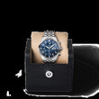 Introducing the unworn IWC Pilot's Watch Chronograph 41, Ref# IW388102—an expertly engineered timepiece where modern functionality meets iconic aviation design. The 41mm round case, crafted from brushed and polished Stainless Steel, offers a balanced presence on the wrist at 14.5mm thick. Its blue sunray-finished dial catches the light with a refined shimmer, while the textured sub-dials provide contrast with their concentric circular pattern. White painted hour markers stand out boldly, with luminous accents at 12, 3, 6, and 9, ensuring readability in all lighting conditions. The polished hands feature luminous fill, and the small seconds sub-dial at 6 o’clock is accented with a red-tipped hand for a subtle dynamic touch. This chronograph is powered by the IWC in-house caliber 69385, a robust column wheel movement beating at 28,800 vph, offering a 46-hour power reserve and supporting precise chronograph functionality: central seconds hand, 30-minute counter at 12, and 12-hour counter at 9 o’clock. Day and date windows are elegantly positioned at 3 o’clock for added utility. A fixed Stainless Steel bezel, screw-in crown, and convex sapphire glass—with double anti-reflective coating and pressure-resistant construction—reinforce the watch’s aviation-ready durability. The transparent case back offers a clear view of the movement in action. The chronograph is equipped with a sophisticated 5-link stainless steel bracelet, seamlessly blending polished and brushed surfaces for a refined yet sporty aesthetic. Secured by a robust folding clasp, it ensures a comfortable and secure fit on the wrist. Thanks to the integrated EasX-CHANGE® system, the bracelet can be effortlessly swapped for another strap without the need for tools—offering instant versatility to suit any occasion or style. Water-resistant to 100 meters, this chronograph is as functional as it is refined—built for both cockpit command and everyday adventure.