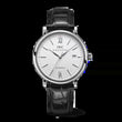 Introducing the unworn IWC Portofino Automatic Men’s Watch, Ref# IW356501—a refined embodiment of timeless elegance and understated luxury. Crafted from polished stainless steel, the 40mm round case is elegantly contoured with gently rounded sides, giving the timepiece a slimmer visual profile despite its 9.5mm thickness. The silvered dial exudes classic sophistication, adorned with applied polished steel hour markers, including prominent Roman numerals at 6 and 12 o’clock. A subtle black minute track, punctuated by Arabic numerals every 5 minutes, enhances legibility—while the "60" printed in red adds a hint of distinctive charm. The watch features polished steel leaf-shaped hands, gracefully sweeping across the dial, with a date window discreetly positioned at 3 o’clock. A convex sapphire crystal with antireflective coating on both sides ensures maximum clarity and scratch resistance. At its heart beats the reliable IWC Calibre 35111, a self-winding movement with 25 jewels, oscillating at 28,800 vph and delivering a 42-hour power reserve. Completing the look is a luxurious black alligator leather strap secured with a stainless steel tang buckle, offering both comfort and class. With a water resistance of 30 meters (99 feet), the Portofino IW356501 seamlessly blends Swiss precision with Italian-inspired aesthetics—an ideal companion for the modern gentleman.
