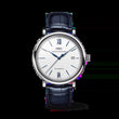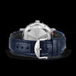 Introducing the unworn IWC Portofino Automatic Men’s Watch, Ref# IW356527—a refined embodiment of timeless elegance and understated luxury. Crafted from polished stainless steel, the 40mm round case is elegantly contoured with gently rounded sides, giving the timepiece a slimmer visual profile despite its 9.2mm thickness. The silver-plated matte dial exudes classic sophistication, adorned with applied polished, blued steel hour markers, including prominent polished, blued steel Roman numerals at 6 and 12 o’clock. A subtle white minute track, punctuated by Arabic numerals every 5 minutes, enhances legibility—while the "60" printed in red adds a hint of distinctive charm. The watch features polished, blued steel leaf-shaped hands, gracefully sweeping across the dial, with a date window discreetly positioned at 3 o’clock. A convex sapphire crystal with antireflective coating on both sides ensures maximum clarity and scratch resistance. At its heart beats the reliable IWC Calibre 35111, a self-winding movement with 25 jewels, oscillating at 28,800 vph and delivering a 42-hour power reserve. Completing the look is a luxurious blue alligator leather strap secured with a stainless steel tang buckle, offering both comfort and class. With a water resistance of 30 meters (99 feet), the Portofino IW356527 seamlessly blends Swiss precision with Italian-inspired aesthetics—an ideal companion for the modern gentleman.