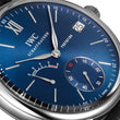 Introducing the unworn IWC Portofino Hand-Wound Eight Days Ref# IW510106 is a refined statement of classic watchmaking, marrying elegance with remarkable endurance. Housed in a polished 45mm stainless steel round case with a slim 12mm profile, it presents a captivating metallic blue dial that radiates depth and sophistication. Polished steel leaf-shaped hour and minute hands glide gracefully over applied indices and Roman numeral hour markers, while a crisp white minute and seconds track with Arabic numerals at five-minute intervals ensures precision at a glance. The dial’s balanced layout features a small second’s sub-dial and a power reserve indicator—both thoughtfully positioned for symmetry—alongside a discreet date display at 3 o’clock. Beneath the sapphire crystal with double-sided anti-reflective coating lies the IWC Caliber 59210 manual-wind movement, beating at 28,800 vph with 30 jewels. It delivers an extraordinary eight-day power reserve, deliberately capped from its full nine-day capacity to maintain optimal accuracy by avoiding diminished mainspring torque. A transparent case back offers an unimpeded view of the finely finished movement, while the black alligator leather strap from Italian artisan Santoni, secured with a stainless steel tang buckle, ensures luxurious comfort. Water-resistant to 30 meters, this Portofino is the epitome of understated glamour, built for those who appreciate both enduring beauty and mechanical mastery.