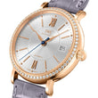 The unworn IWC Portofino Midsize Automatic Ref# IW458107 is an exquisite fusion of refined elegance and subtle luxury. Crafted in polished solid 18k Rose Gold, its 37mm round case is perfectly balanced for a graceful wrist presence, measuring just 9mm in thickness for a sleek, comfortable fit. The silver-plated dial is adorned with applied polished 18k Rose Gold-toned indices, Roman numerals at 6 and 12, and delicate dot hour markers. Slender feuille hour and minute hands in matching Rose Gold, paired with a blued steel second’s hand, create a harmonious interplay of warm and cool tones. A discreet date aperture at 3 o’clock adds practical sophistication. Encircling the dial, the 18k Rose Gold bezel is set with 66 brilliant-cut diamonds, adding a radiant sparkle without overpowering the watch’s refined character. Beneath the convex, scratch-resistant sapphire crystal—treated with anti-reflective coating on both sides—beats the IWC Calibre 35111, a precise automatic movement with 25 jewels, a frequency of 28,800 vph, and a 42-hour power reserve. The solid case back underscores the watch’s timeless restraint. Completing the look is a lilac alligator leather strap by Santoni, renowned for its artisanal Italian craftsmanship, secured with an 18k Rose Gold tang buckle. With a water resistance of 30 metres, this Portofino embodies understated glamour, making it a perfect companion for both everyday elegance and special occasions.