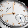 Introducing the unworn IWC Portugieser Automatic 40mm Men's Watch, Ref# IW358303—a masterful blend of understated elegance and mechanical precision. Housed in a stainless steel case with brushed edges and a polished fixed bezel, the 40.4mm round silhouette offers a timeless presence, while its 12.3mm thickness ensures a comfortable, modern fit. The silver dial exudes quiet sophistication, highlighted by applied polished rose gold-toned Arabic numerals and a slim minute track along the outer rim, marked with rose gold indices at five-minute intervals. At 6 o’clock, a refined small second’s sub-dial features a delicate concentric circular texture and polished blued hand, lending depth and precision to the clean design. Powering this elegant timepiece is the IWC-manufactured Caliber 82200—an automatic movement beating at 28,800 vph, with 31 jewels and a 60-hour power reserve. The inner workings can be admired through the transparent sapphire crystal case back, showcasing IWC’s commitment to fine watchmaking. Protected by an anti-reflective scratch-resistant sapphire crystal, the dial remains legible in all conditions. The pull/push crown in stainless steel is thoughtfully designed for ease of adjustment while maintaining the watch’s clean profile. Paired with a classic black alligator leather strap, the timepiece features a newly developed butterfly-folding clasp that ensures a secure and exceptionally comfortable fit. Water-resistant to 30 meters (99 feet), the IWC Portugieser Automatic is a refined companion for both daily wear and formal occasions—an enduring symbol of sophistication and horological craftsmanship.
