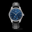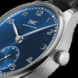 Introducing the unworn IWC Portugieser Automatic 40mm Men's Watch, Ref# IW358305—a masterful blend of understated elegance and mechanical precision. Housed in a stainless steel case with brushed edges and a polished fixed bezel, the 40.4mm round silhouette offers a timeless presence, while its 12.3mm thickness ensures a comfortable, modern fit. The Blue dial exudes quiet sophistication, highlighted by applied polished rhodium-plated Arabic numerals and a slim minute track along the outer rim, marked with rhodium-plated indices at five-minute intervals. At 6 o’clock, a refined small hacking second’s sub-dial features a delicate concentric circular texture and polished rhodium-plated hand, lending depth and precision to the clean design. Powering this elegant timepiece is the IWC-manufactured Caliber 82200—an automatic movement beating at 28,800 vph, with 31 jewels and a 60-hour power reserve. The inner workings can be admired through the transparent sapphire crystal case back, showcasing IWC’s commitment to fine watchmaking. Protected by an anti-reflective scratch-resistant sapphire crystal, the dial remains legible in all conditions. The pull/push crown in stainless steel is thoughtfully designed for ease of adjustment while maintaining the watch’s clean profile. Paired with a classic black alligator leather strap, the timepiece features a newly developed butterfly-folding clasp that ensures a secure and exceptionally comfortable fit. Water-resistant to 30 meters (99 feet), the IWC Portugieser Automatic is a refined companion for both daily wear and formal occasions—an enduring symbol of sophistication and horological craftsmanship.