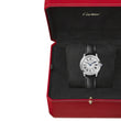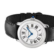 Timeless elegance meets everyday sophistication in the Cartier Ronde Must de Cartier Women’s Watch, Ref# WSRN0030 — a harmonious blend of classic Cartier design and refined craftsmanship. This exquisite timepiece features a 29mm round case crafted from luxurious Stainless Steel. The fixed Stainless Steel bezel enhances the watch’s clean, graceful silhouette, while the Stainless Steel crown is set with a signature synthetic cabochon, adding a subtle yet unmistakable Cartier touch. The Silver dial is a study in timeless contrast and clarity, showcasing a unique combination of black Roman numerals — a nod to Cartier’s heritage of bold, legible design. In the center of the dial is an exquisite minute track, where a distinct square indicator marks each five-minute increment. This thoughtful layout offers a modern twist on traditional timekeeping, combining clarity with character. Sleek, blued steel sword-shaped hands sweep across the dial, guided by the precision of the Cartier quartz movement, this watch ensures effortless, maintenance-free performance for daily wear. Scratch-resistant sapphire crystal and a robust case back protect the dial and movement, ensuring long-lasting, accurate performance. A Black Calfskin leather strap adds warmth and texture, paired with a classic Stainless Steel Deployant buckle for a secure, comfortable fit. Water resistant to 30 meters (100 feet) and presented in unworn condition, the Cartier Ronde Must de Cartier WSRN0030 is the epitome of quiet luxury — effortlessly bridging the gap between daywear elegance and evening refinement.