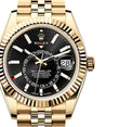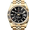 Introducing the Rolex Sky-Dweller, an epitome of elegance and innovation in horology. This stunning timepiece features a 42mm 18K yellow gold case, beautifully complemented by a bright black dial. The dial is adorned with Chromalight display for enhanced legibility and an off-center disc for dual time zone functionality. The iconic fluted bezel adds a classic touch, while the scratch-resistant sapphire crystal ensures durability. Powered by the Rolex Caliber 9002, this watch boasts a remarkable 72-hour power reserve and is water-resistant up to 100 meters. The 18K yellow gold Jubilee bracelet with an Oysterclasp and Easylink comfort extension link guarantees a secure and comfortable fit. Offered in unworn condition, this Sky-Dweller comes as a full set with the original Rolex box, booklets, and a Rolex warranty card dated 2024. Secure this exceptional timepiece today and experience the blend of cutting-edge technology and timeless elegance. Perfect for any collection, the Rolex Sky-Dweller is ready to accompany you on any journey, whether for business or leisure.