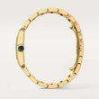 Elevate your collection with the Cartier Tank Française Medium Women's Watch, Ref. WGTA0113 — a refined fusion of timeless design and precious materials. Crafted entirely in brushed and polished 18k Yellow Gold, this striking timepiece embodies the effortless sophistication Cartier is known for. The fixed smooth 18k Yellow Gold bezel and the unique, subtly curved case (measuring 32mm x 27mm with a 7.1mm thickness) create a graceful silhouette on the wrist. The golden sunray dial radiates with quiet elegance, complemented by polished blued steel hands and classic Roman numeral hour markers, framed by a refined minute track. At its heart is a Swiss quartz movement, offering reliable, maintenance-free precision for everyday luxury. The signature sapphire cabochon set into the push-pull 18k Yellow Gold crown adds Cartier's hallmark flair, while the scratch-resistant sapphire crystal ensures durability. Water-resistant up to 30 meters (100 feet), the watch combines form and function seamlessly.Finished with a matching 18k Yellow Gold bracelet and a secure 18k Yellow Gold folding clasp, the Tank Française WGTA0113 is more than a timepiece — it’s a bold statement of style and heritage, designed for those who appreciate timeless design and uncompromising quality.
