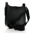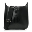 This is an authentic HERMES Vache Hunter Evelyne Sellier 29 PM in Black. This limited edition messenger is beautifully featured in polished calfskin leather in black. It features a fabric cross body strap, an embossed Hermes H at the front and palladium hardware including clasps for the shoulder strap. The top is open to a matching suede interior with an internal flat pocket.
