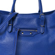This is an authentic BALENCIAGA Veau Papier A6 Zip Around Tote in Bleu Roi. This tote is crafted of blue grained calfskin leather and silver hardware. The top opens to a blue suede interior.