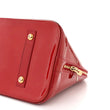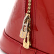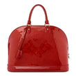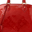 This is an authentic LOUIS VUITTON Vernis Alma GM in Rose Indien. This bowler style tote in the large size is created of monogram embossed vernis patent leather in bright pink for a stunning look. The bag also features rolled leather top handles and a double brass wrap around zipper that opens to an interior of matching fabric with pockets.