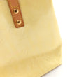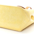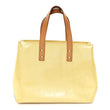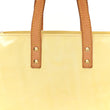 This is an authentic LOUIS VUITTON Vernis Reade PM in Perle. This stylish handbag is crafted of Louis Vuitton monogram embossed vernis patent leather. The bag features vachetta cowhide leather top handle straps and opens to a grey fabric interior with a zipper pocket.