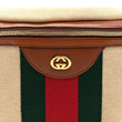 This is an authentic GUCCI Vintage Canvas Web Belt Bag in Sand Cuir. This belt bag is crafted of beige canvas, brown leather trim and gold hardware. The zipper opens to a green fabric interior.