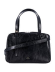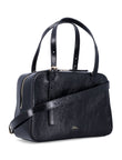 ITS GLOSSY TEXTURED FINISH ELEVATES THE SIMPLE SILHOUETTE, WHILE DUAL TOP HANDLES AND AN ADJUSTABLE SHOULDER STRAP ENSURE PRACTICALITY.