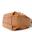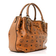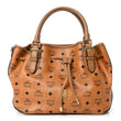 This is an authentic MCM Visetos Drawstring Shopper in Cognac. This tote is crafted of brown monogram coated canvas, brown leather trim, and gold hardware. The top opens to a brown fabric interior.