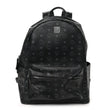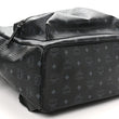This is an authentic MCM Visetos Large Stark Backpack in Black. This backpack is crafted of black monogram coated canvas and gunmetal hardware. The top opens to a brown leather interior with patch pockets.