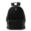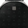 This is an authentic MCM Visetos Medium Side Studs Stark Backpack in Black. This backpack is crafted of textured black visetos coated canvas with MCM logo print. The backpack features a front zipper pocket, two patched pockets on the sides with polished ruthenium studs, rolled leather handle and adjustable shoulder straps. The two-way zip-around top opens to a grey fabric interior with patch pockets.