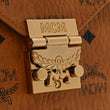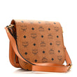 This is an authentic MCM Visetos Patricia Crossbody Bag in Cognac. This chic crossbody bag is crafted of coated canvas in brown with the MCM monogramming in black. The bag features a brown leather crossbody strap and gold-toned hardware. The v-shaped crossover flap opens with a gold push-lock to a partitioned brown microfiber interior with zipper and patch pockets.