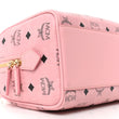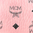 This is an authentic MCM Visetos Small Ella Boston Bag in Soft Pink. This chic Boston style tote is finely crafted of visetos coated canvas in classic MCM monogram in black with a pink background. The bag features rolled leather top handles with polished gold hardware and an optional shoulder strap. The top zipper opens to a beige fabric interior with a patch and zipper pocket.
