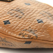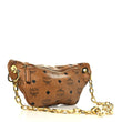 This is an authentic MCM Visetos Stark Belt Bag Cognac. This trendy belt bag is made finely crafted of textured brown visetos coated canvas with MCM logo print. The bag features an adjustable belt strap, gold tone hardware, and a top zipper opens to a beige fabric interior with a small patch pocket.