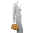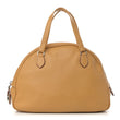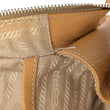 This is an authentic PRADA Vitello Daino Bowler Bag in Sughero. This stylish Prada bag is crafted of luxuriously textured calfskin leather in dark beige. The bag features leather strap handles, an embossed Prada logo, and silver hardware. The top zipper opens to a Prada jacquard monogram fabric interior with a zipper pocket.