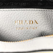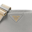 This is an authentic PRADA Vitello Daino Soft Medium Double Zip Shoulder Bag in Ardesia. This stunning crossbody bag is beautifully crafted of grained calfskin leather in gray. The bag features an adjustable leather shoulder strap, a canvas shoulder strap, and gold hardware. The top zippers each open to a compact black Prada monogrammed fabric interior.