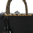 This is an authentic FENDI Vitello Dolce Elaphe Petite 2Jours Tote in Black and Polvere. This chic travel tote is crafted of luxuriously soft calfskin leather in black. This shoulder bag has rolled Elaphe snakeskin top handles, an optional shoulder strap, expansive sides, and a snakeskin top bar. This opens to a spacious light blue leather interior with a central zipper pocket.