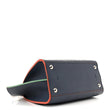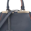 This is an authentic FENDI Vitello Dolce Mini 3jours Tote in Mirto. This lovely tote is crafted of beautiful fine grained calfskin leather in blue with contrast edging. The bag features leather top handles with silver links, an optional crossbody shoulder strap with silver clasps, expandable sides, and a top silver frame with a hanging clochette. The top zipper opens to a blue leather interior.