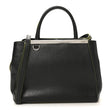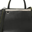 This is an authentic FENDI Vitello Elite Apple Charm Petite 2Jours Tote in Black. This stunning tote is crafted of black textured calfskin leather with green resin. It features rolled leather top handles, an optional shoulder strap, and expansive sides with a silver top frame and a wide-open top. The top frame unsnaps to a partitioned fabric interior with a central zippered pocket.