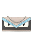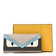 This is an authentic FENDI Vitello Elite Monster Eyes Studded Continental Wallet On Chain Carbone White Multicolor. This delightful wallet is crafted of Fendi Vitello cross-grain leather with frightening monster eyes on the facing flap! Optional silver chain shoulder strap, and flap opens to a maroon cross-grain and fabric interior with card slots, patch pockets, and a currency compartment.