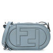 This is an authentic FENDI Vitello Grace Camoscio Mini Camera Case in Azzurro Baby. This delightful bag is crafted of calfskin leather in blue. It features polished silver hardware and an adjustable shoulder strap with a fendi logo. The top zipper opens to a brown fabric interior.