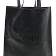 This is an authentic FENDI Vitello Grace Light Logo Fendi Pack Flat Shopping Tote in Black. This stylish tote is crafted of calfskin leather in black. It features leather top handles and an enamel embossed logo in the center of the bag. The top is open to a black interior.