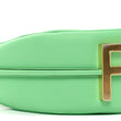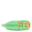 This is an authentic FENDI Vitello Grace Matte Small Fendigraphy Hobo Bag in Edamame. This stylish shoulder bag is crafted in smooth green leather with five gold-tone feet at the base, an optional leather shoulder strap, gold-tone hardware, and a bold magnetic closure Fendi logo handle. The top opens to a spacious black fabric interior.