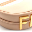 This is an authentic FENDI Vitello Grace Matte Small Fendigraphy Hobo Bag in Light Rose. This stylish shoulder bag is crafted in smooth light pink leather with a gold FENDI logo at the base, a leather shoulder strap, and gold-tone hardware. The top zipper opens to a spacious fabric interior.