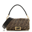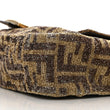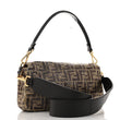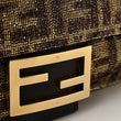 This is an authentic FENDI Vitello King Beaded Zucca Baguette in Mogano Panna and Ebano. This stunning baguette is crafted of satin fabric embroidered with a beaded FF motif. The bag features a brown leather strap, an optional leather shoulder strap, and a front flap with a gold Fendi FF clasp closure. This opens to a brown satin fabric interior with a zipper pocket.