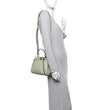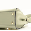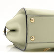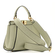 This is an authentic FENDI Vitello Seta Canvas FF Embroidered Mini Peekaboo Iconic Satchel in Green Tea. This stylish shoulder bag is crafted of calfskin leather in light green. The satchel features a leather top handle, an optional adjustable shoulder strap, and polished gold hardware including handle links and a top interior structured frame. The shoulder bag also features a polished gold turn lock on each side opening to a matching leather lining with zipper and patch pockets.